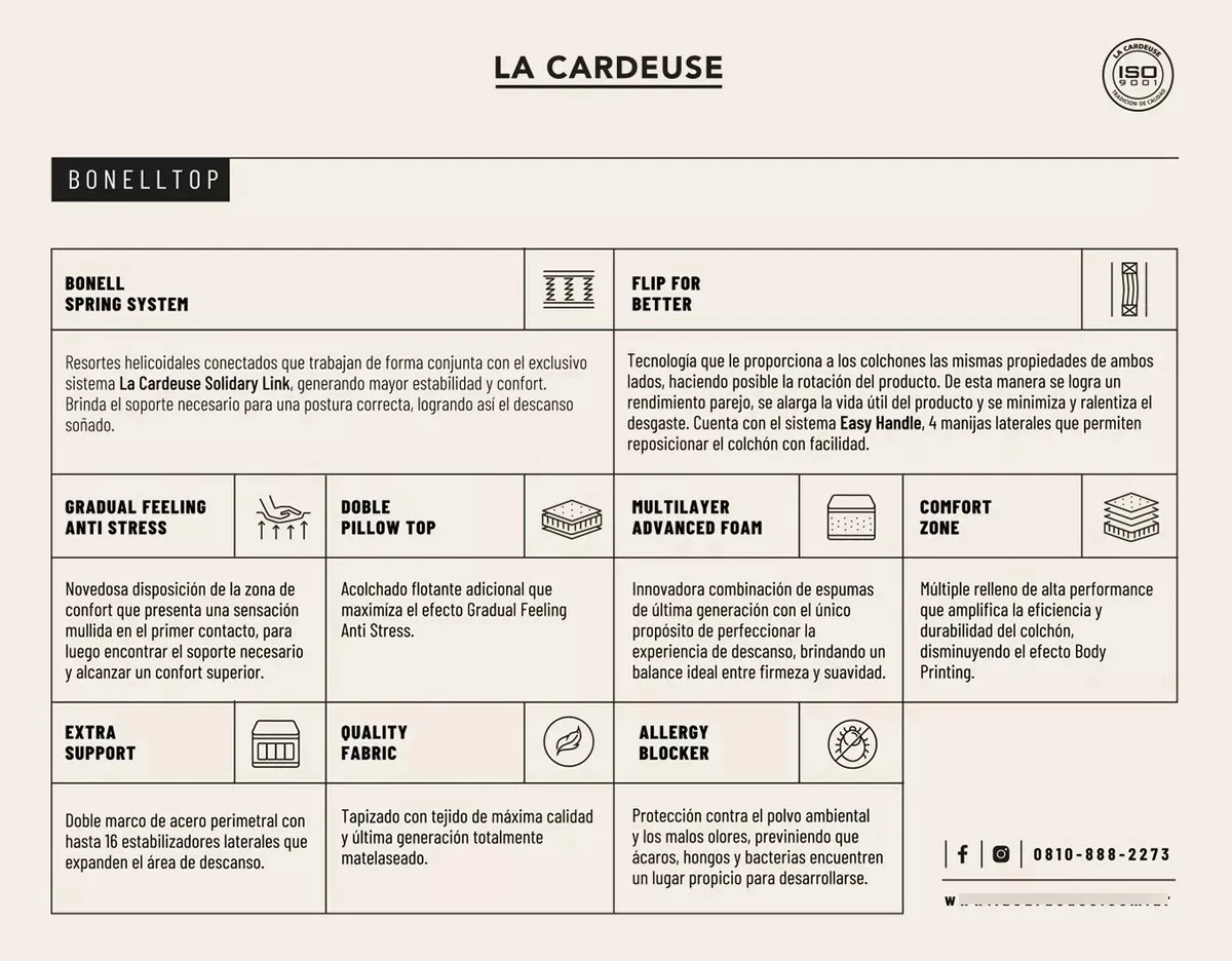 Un descanso reparador es la clave para disfrutar de un amanecer placentero. La Cardeuse Bonelltop brinda noches repletas de dulces sueños. Creado con materiales de calidad, asegura una experiencia saludable y duradera.