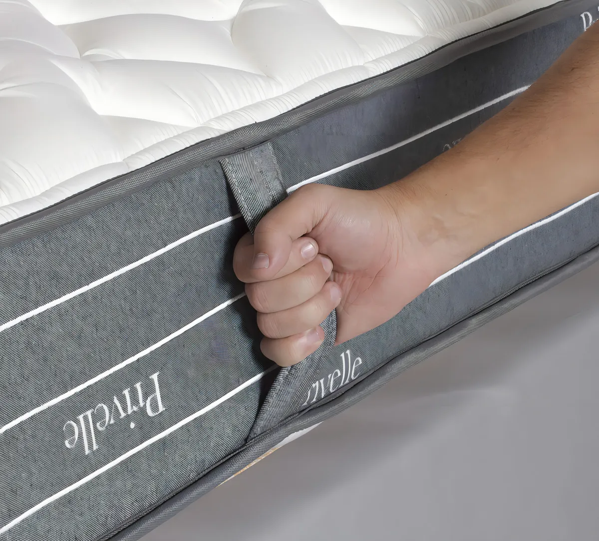 Los resortes Bonnell son bicónicos, con forma de reloj de arena. Unidos entre sí, arman la estructura ideal para garantizar la estabilidad que tu cuerpo necesita durante el reposo, adaptándose así a cada posición que tomes durante tu descanso.
