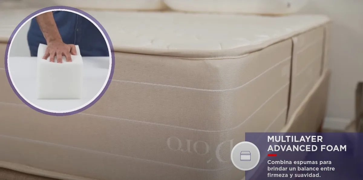 – Esta recubierto en telas Jackard de primera calidad, con un matelaseado cerrado y fino, brindando una mayor sensación de firmeza. Cuenta con protección contra el polvo ambiental y los malos olores.